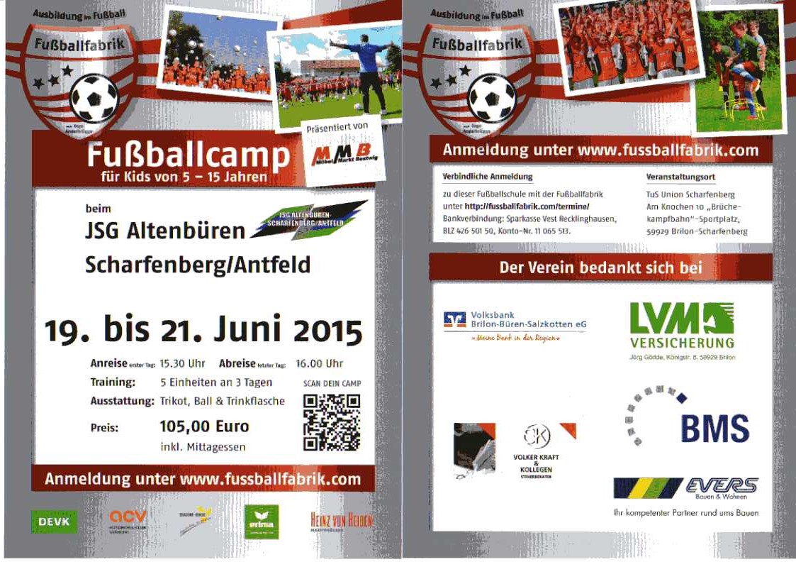 Vom 19.06. bis 21.06.2015 plant die Jugendspielgemeinschaft ein Fußball-Basiscamp zusammen mit der Ingo Anderbrügge Fußballfabrik.
