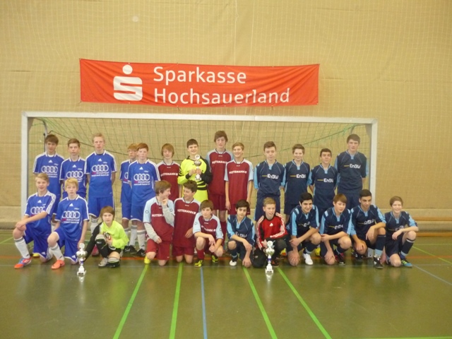 Anschließend spielten die D-Junioren um den Pokal des Elmerborg-Junior-Wintercups. In den 14 Partien konnten sich besonders die Torjäger in den Vordergrund spielen. Mit 69 Buden gab es pro Partie fast ein Schnitt von 5 Toren, so dass die Zuschauer sehr attraktiven Fußball sahen. Im Gegensatz zu den C-Junioren haben sich hier die Teams aus dem Kreis Brilon gegen die Vertreter aus Meschede und Warburg durchgesetzt. Im Spiel um den dritten Platz gewann die JSG Eversberg / Heinrichsthal / Wehrstapel gegen die SF Warburg 08 mit 3:1 und im Endspiel der TSV Bigge-Olsberg gegen die 2. Mannschaft des SV Brilon mit 5:1.