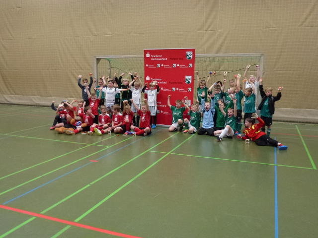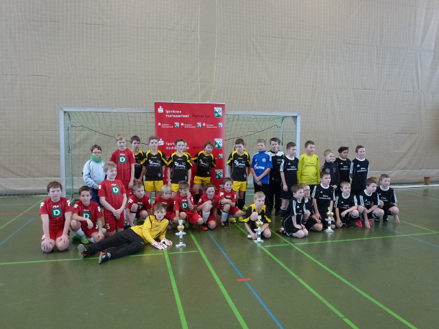 Beim abschließenden F-Junioren-Turnier musste eine Mannschaft kurzfristig absagen, da ein großer Teil der Spieler erkrankt war. Das Turnier wurde mit 9 Mannschaften durchgeführt. In beiden Gruppen war früh klar, dass zwei Teams nicht zu schlagen waren. Sowohl der SV Brilon I als auch die SG Siedlinghausen / Silbach konnten alle Gruppenspiele gewinnen. Während der 2. Platz in der Gruppe A sicher an die JSG Thülen / Rösenbeck-Nehden ging, gab es in der Gruppe B einen spannenden Dreikampf. Die Entscheidung fiel im letzten Gruppenspiel zwischen dem TuS Petersborn-Gudenhagen und der JSG Altenbüren-Scharfenberg / Antfeld. Nur der Sieger konnte Gruppenzweiter werden, bei Unentschieden war die 2. Welle des SV Brilon der lachende Dritte. Beide Mannschaften spielten voll auf Sieg, der entscheidende Treffer fiel aber erst 40 Sekunden vor Schluss für den TuS Petersborn-Gudenhagen. Das Spiel um den 3. Platz ging dann jedoch mit 0:1 gegen die JSG Thülen / Rösenbeck-Nehden verloren. Im letzten Spiel des Elmerborg-Junior-Wintercups standen sich die bis dahin ungeschlagenen Mannschaften des SV Brilon I und dem Team (des ehemaligen Altenbüreners) Frank Hartmann, der SG Siedlinghausen / Silbach, gegenüber. In den ersten Minuten verlief die Partie ausgeglichen, doch mit zunehmender Spieldauer wurde die SG immer stärker und gewann am Ende deutlich mit 3:0. Bei der abschließenden Siegerehrung konnten die Spieler der siegreichen Teams die Pokale unter dem Applaus der zahlreichen Zuschauer in Empfang nehmen.