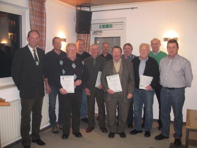Vorsitzender Volker Dietrich und Burkhard Schwermer-Funke haben den anwesenden Mitgliedsjubilaren gedankt und eine Ehrenurkunde überreicht. Folgende Sportskameraden standen zur Ehrung an: 60-jährige Treue zum TuS: Manfred Göke sen., Dieter Funke 50-jährige Treue zum TuS: Franz Bette, Günter Schwermer-Funke, Richard Schlüter, Günter Brandt 40-jährige Treue: Karl-Heinz Becker, Gerwin Betten, Günter Nieder, Günter Mester, Willi Morgenroth, Ferdi Schulte, Siegfried Schmidt, Bernd Müller.