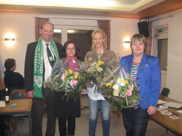 Bei den anschließenden Neuwahlen wurde der Vorsitzende Volker Dietrich einstimmig wiedergewählt. Er bekleidet diese Position bereits in der siebten Amtszeit. Nach teils langjähriger Vorstandarbeit schieden Anja Urbschat, Sabine Andreas und Ulrike Hohmann aus ihren Ämtern aus. In das Amt des Geschäftsführers, und damit als Nachfolger von Ulrike Hohmann wählte die Versammlung Richard Hüpping. Volker Dietrich bedankte sich bei den drei ehemaligen Vorstandskolleginnen mit Worten des Dankes sowie einem Blumenstrauß für die geleistete Arbeit. Um den vielfältigen Interessen der jugendlichen Mitglieder des TuS noch besser entgegen kommen zu können, beschloss die Versammlung ebenso einstimmig, einen Jugendvorstand zu gründen. Torben Rüther, Dominik Mester und Emkin Coscum werden ab sofort diese Aufgaben im Vorstand übernehmen.